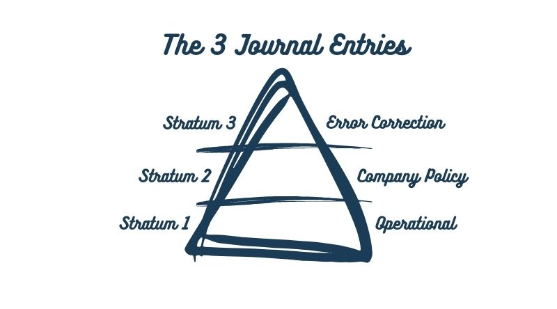 The next type of journal entry is based on corporate policy or our own accounting governance. My favorite example is in the eCommerce world, where customers return products for a refund or a replacement. Accordingly, managers may deem it necessary to record a 3% monthly levy on sales for returns and allowances. I’m calling this a Stratum 2 entry.